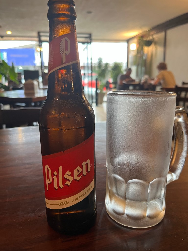 I order a chicken casado plate and a Pilsen beer. Casados have a variety of things on the plate, as you can see in the pic.