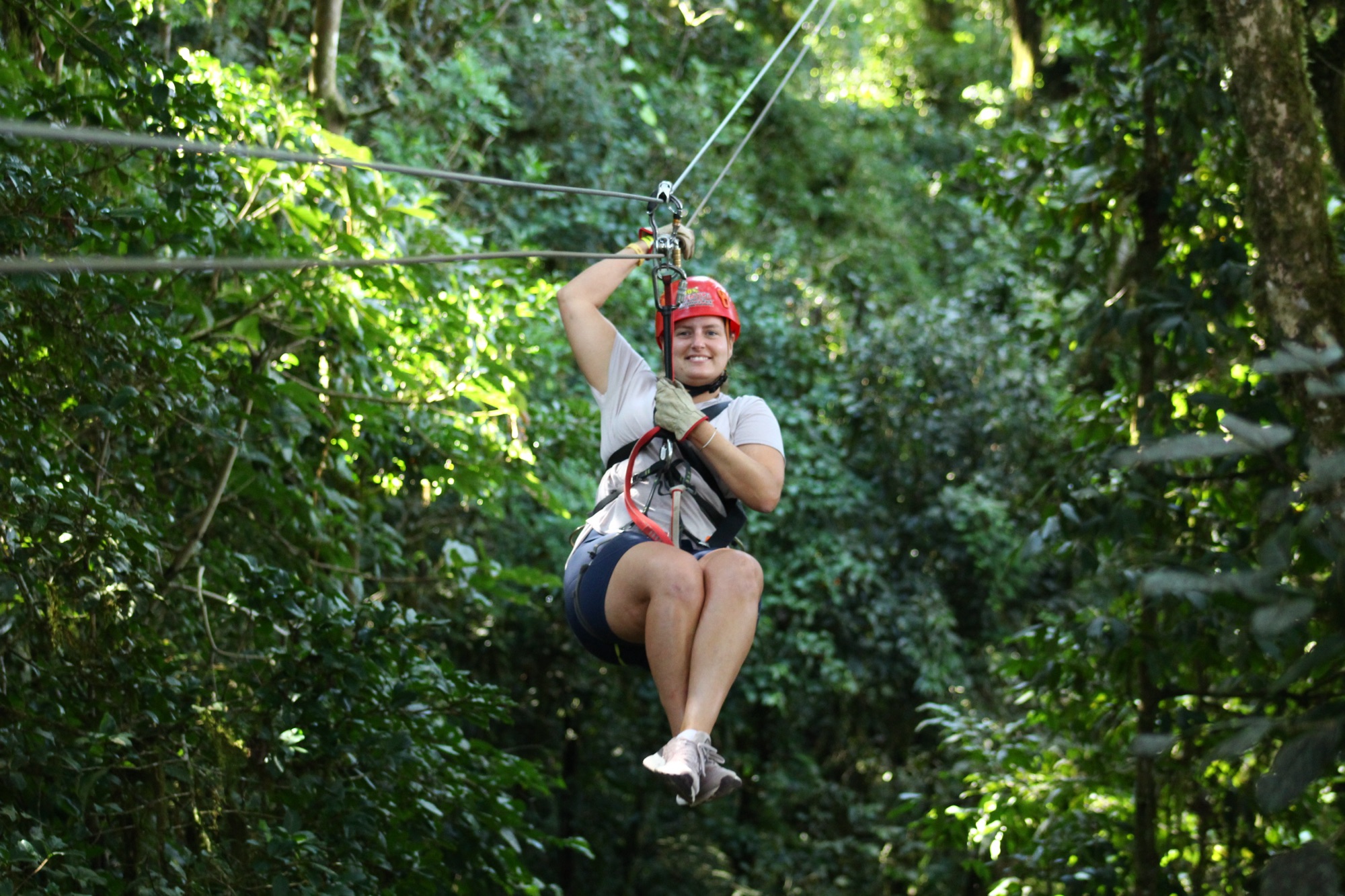 I successfully complete both runs, and the zipline tour is over. Or is it…………We have the option for one last adrenaline rush……to do a Tarzan swing off the high platform. My first thought is OH HELL NO; I did a canyon swing years ago in New Zealand and it was one of the most terrifying things (but also cool. Haha). I’m with Poline and Paige, and neither of them want to do it. I decide to go look over the edge, see how high it is, see how shaky my legs feel. I see Ivonne waving down below…. she had just jumped! Well, now I feel like I can’t chicken out and I figure, hey, what if I never get to do this again. So, I step off the platform and swing the hell off, legs involuntarily flailing(if you’ve done a fall like this before, you know what I mean…it’s so weird. Haha). Ok, yeah, it is worth the rush. The only other person to join this madness is James. And now the 3 of us have to walk all the way back up to the starting point…..it’s quite a trek and it’s still really humid but totally worth it.
