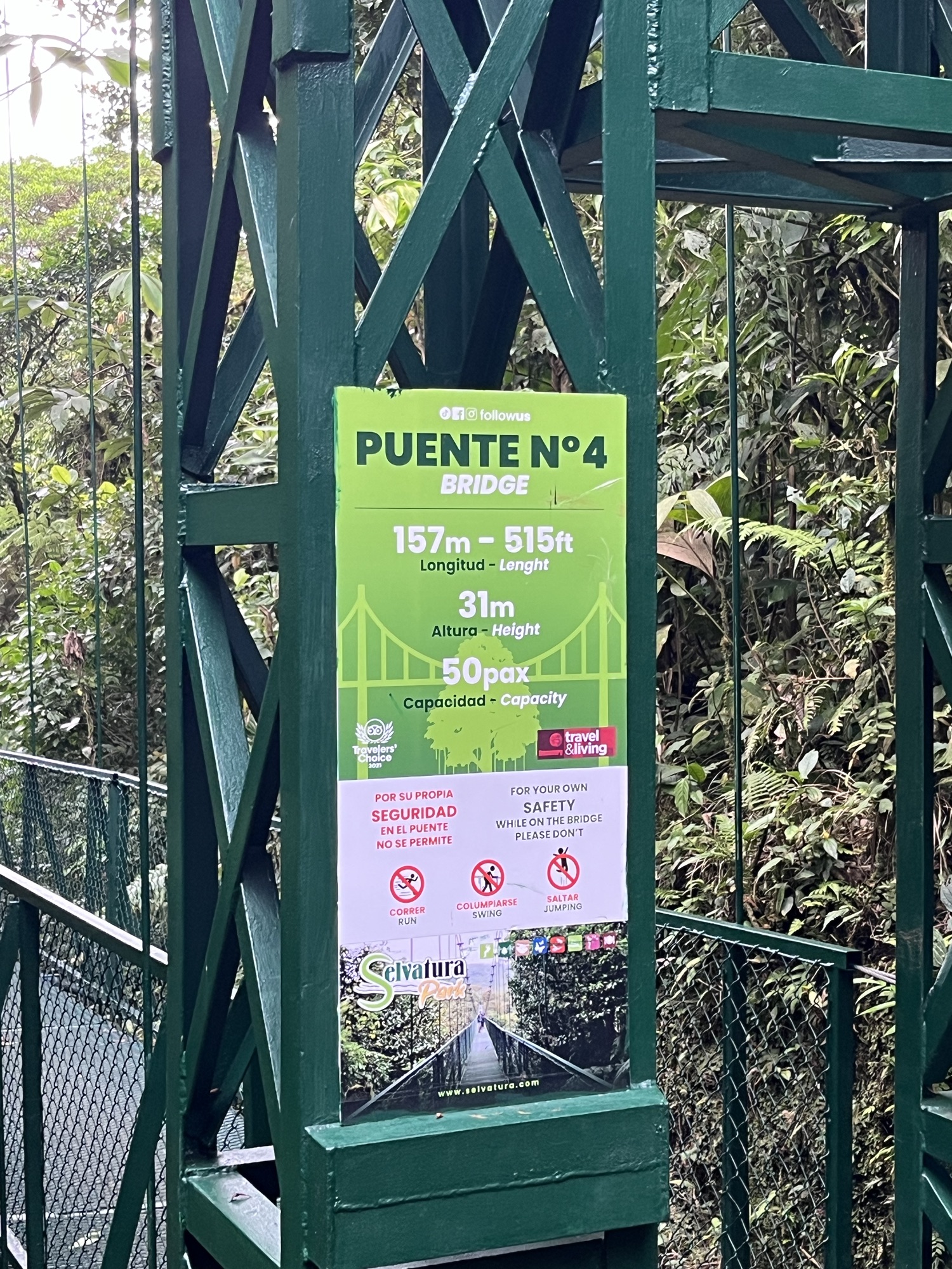 Our last activity in Monteverde is a hanging bridge walk. The bridges are a little shaky, which adds to the fun!