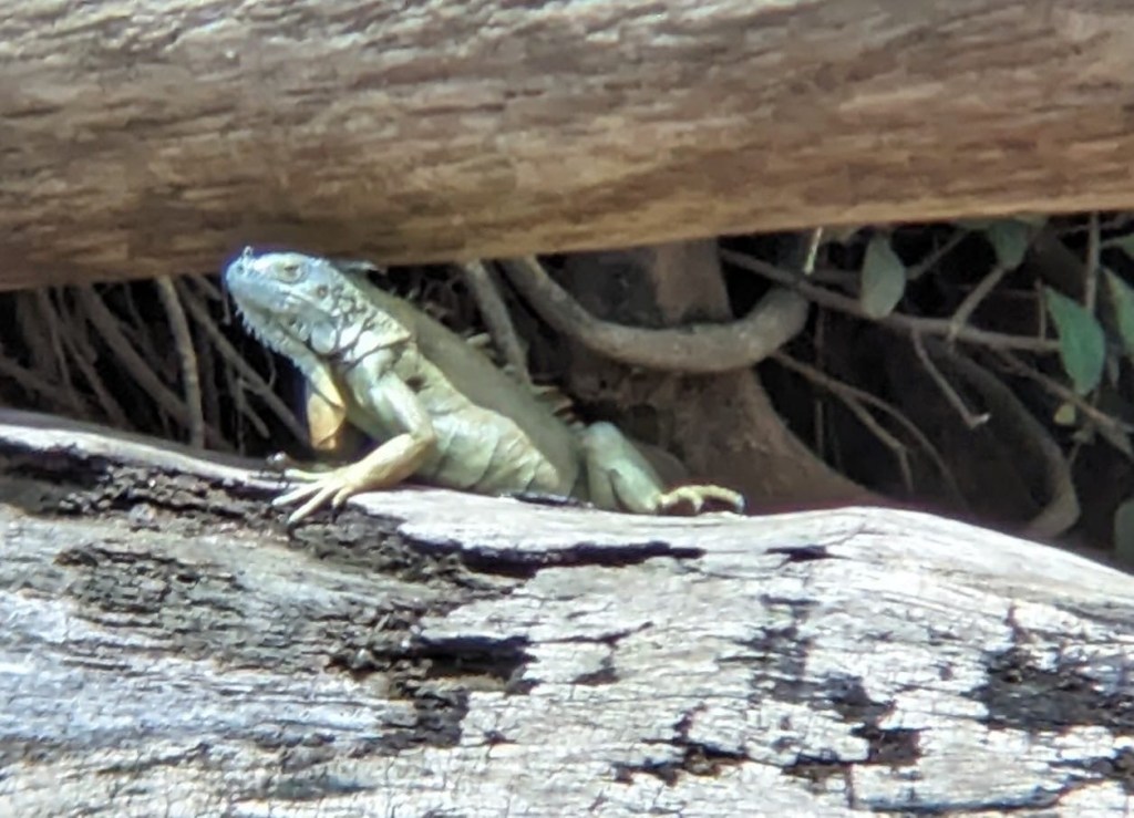 The water is murky brown, so you would not want to jump in…you also may encounter a caiman or two! As we motor along, these cute small birds are flying alongside of the boat. I can’t tell if they’re having fun or if they’re mad we are in their territory. Haha. The pontoon boat is able to pull in close to the shores so we can have a better look at all the critters.