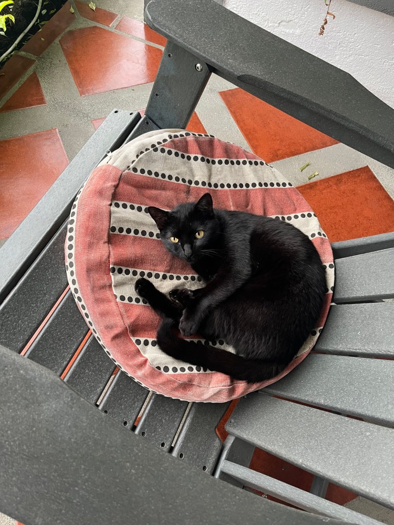 There is also a resident cat named Esmeralda, and we become friends.
