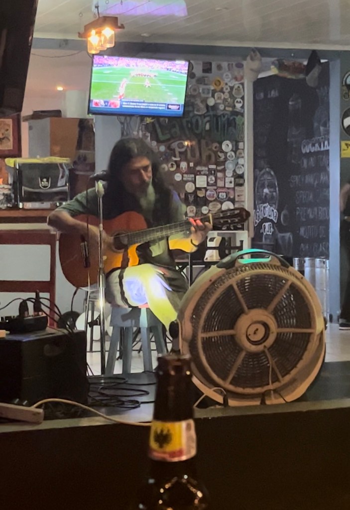 After the drive back to La Fortuna, I get dropped off on the main road so I can finish my souvenir shopping. I grab a slice of tres leche cake to bring back for me and Ivonne to devour, since she hasn’t tried it yet. Tonight’s dinner is at La Fortuna pub, a few minutes walk from the hotel and we get there right in time for happy hour. We play a few rounds of Jenga, and then a gentleman arrives to entertain us with his guitar.