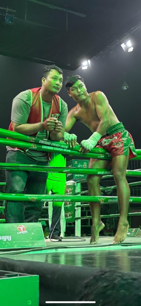 As I mentioned, Vic is Cambodian, so he speaks the language and literally talks to every Cambodian he sees. It’s so cute to witness his connection to the people here. Whether it’s a wave and a smile, or a Suostei (Hi), he is on top of it. We are picked up by a fleet of tuk tuk’s to take us to the arena. Our driver is talking to Vic, and Vic lets us know that he is apologizing because he had a beer before he picked us up. What?? Haha.