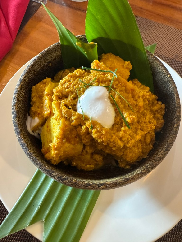 After visiting the Killing Fields, next on the itinerary is our lunch stop; we will be dining at Khmer River Restaurant. Of course, we could go off on our own and eat wherever we like, but G Adventures carefully selects these places for the quality of food and cleanliness. And it’s always fun to enjoy a meal with my awesome group! I have the amok with tofu. Amok is considered the most popular dish in Cambodia; it’s a spicy coconut fish curry, steamed in a banana leaf. I’m not a huge fan of fish, so that’s why I choose tofu instead. It tastes amazing.
