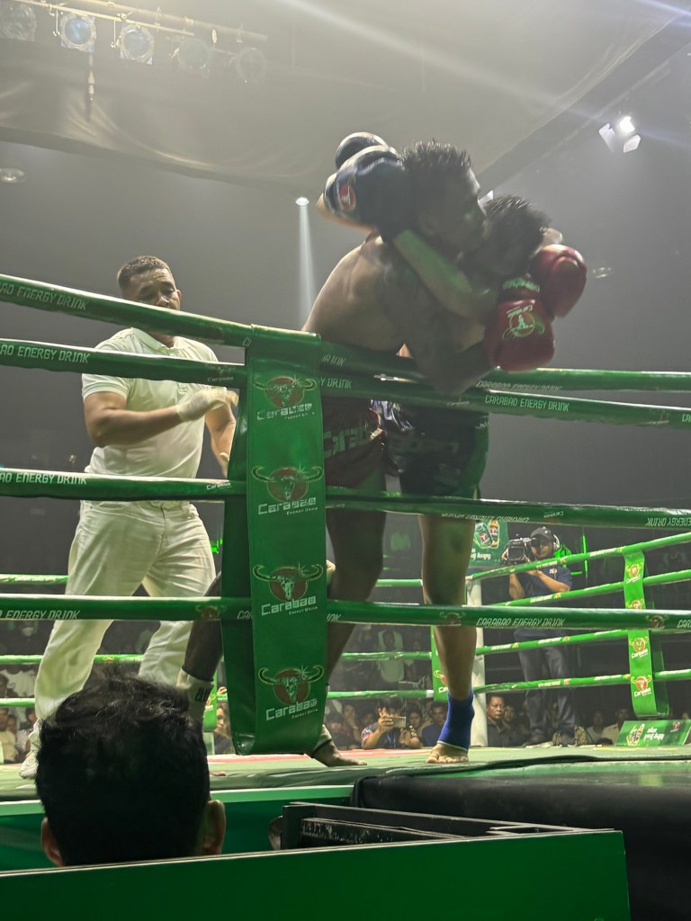 He’s got 4 backup dancers, and they look really unenthusiastic and out of place. Like is someone forcing them to be there? Haha. It looks like someone just said, hey we need 4 cute girls to do a couple of steps back and forth on stage in an hour. Any takers? Haha. After the fights are done, we stick around and get to climb into the ring. So fun.