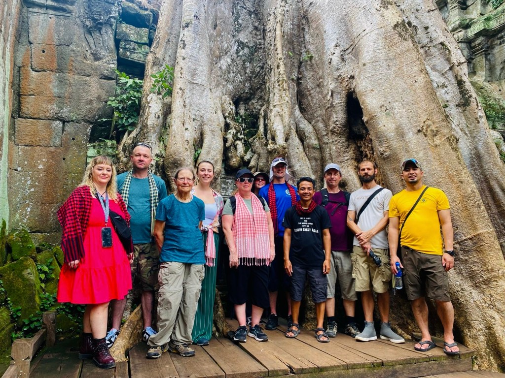 We arrive at Ta Prohm, and if it looks familiar, you may recognize it from the film Tomb Raider. If you want to see it in the movie, forward to the 40 minute mark.