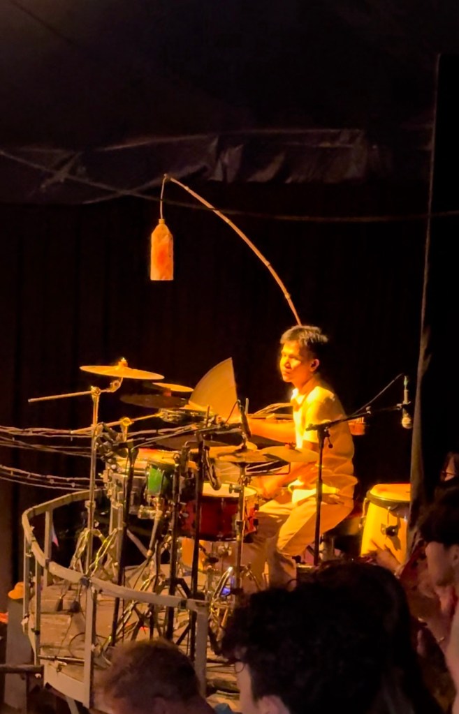 There is a live band that plays the music and they are great, especially this drummer. He kicks ass.