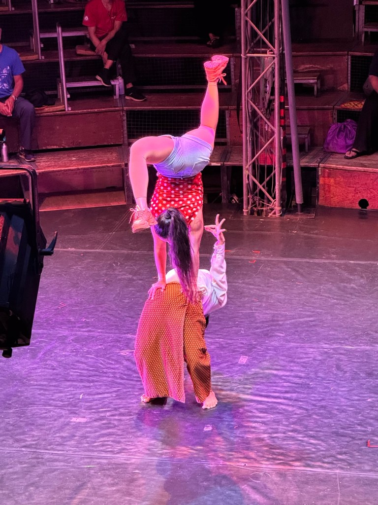 Next up is jumping from a platform onto a see-saw to catapult the acrobats into multiple flips, and throwing people around. Haha