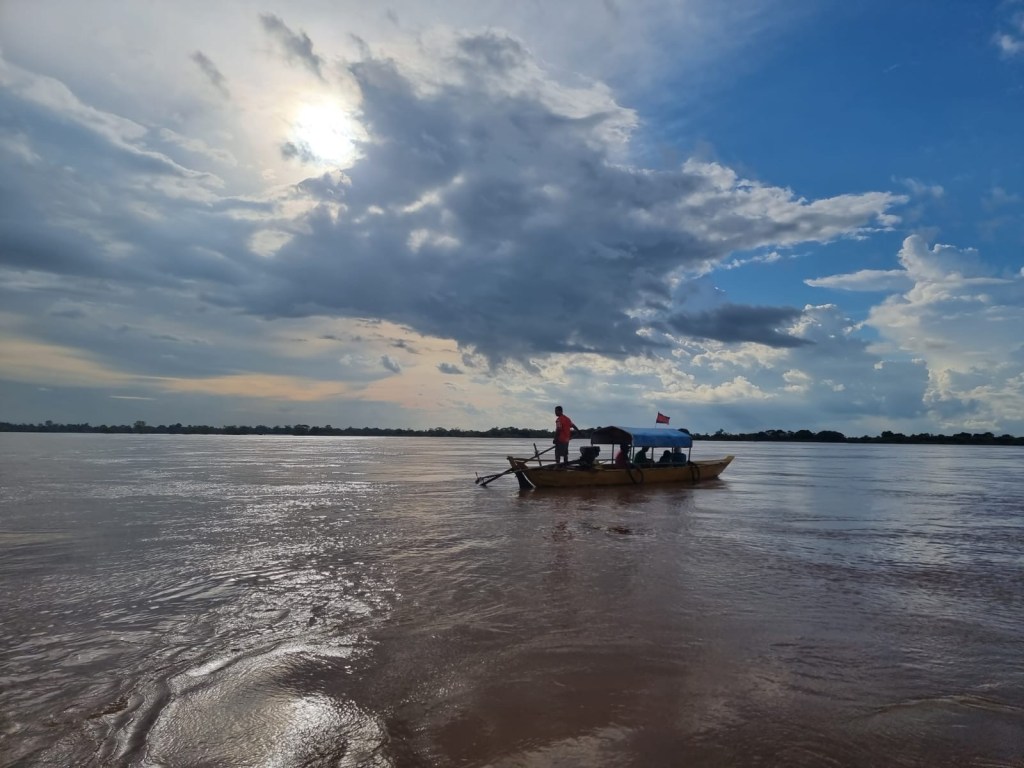 We are spending the rest of the afternoon on a boat in the Mekong Rover, on the lookout for the Irrawaddy Dolphins. We divide up into 3 boats, and head out to see if we can spot some today.