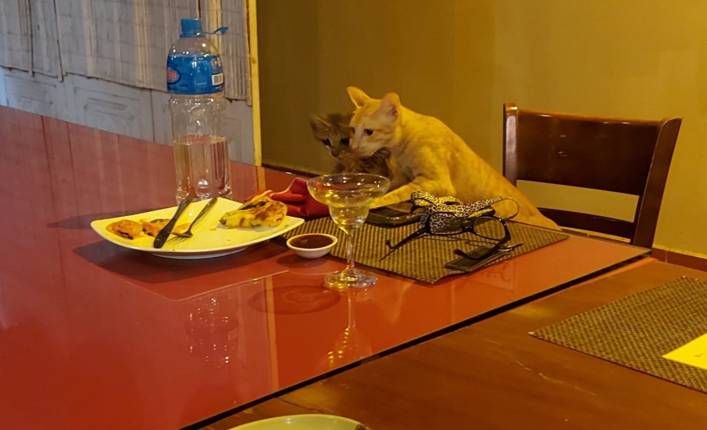 I have another pizza…haha. Another option for tonight would have been to enjoy a night by the pool, but the rain won’t let up. There are some resident kitties that I get to have some fun with, we play and I feed them some of my pizza.