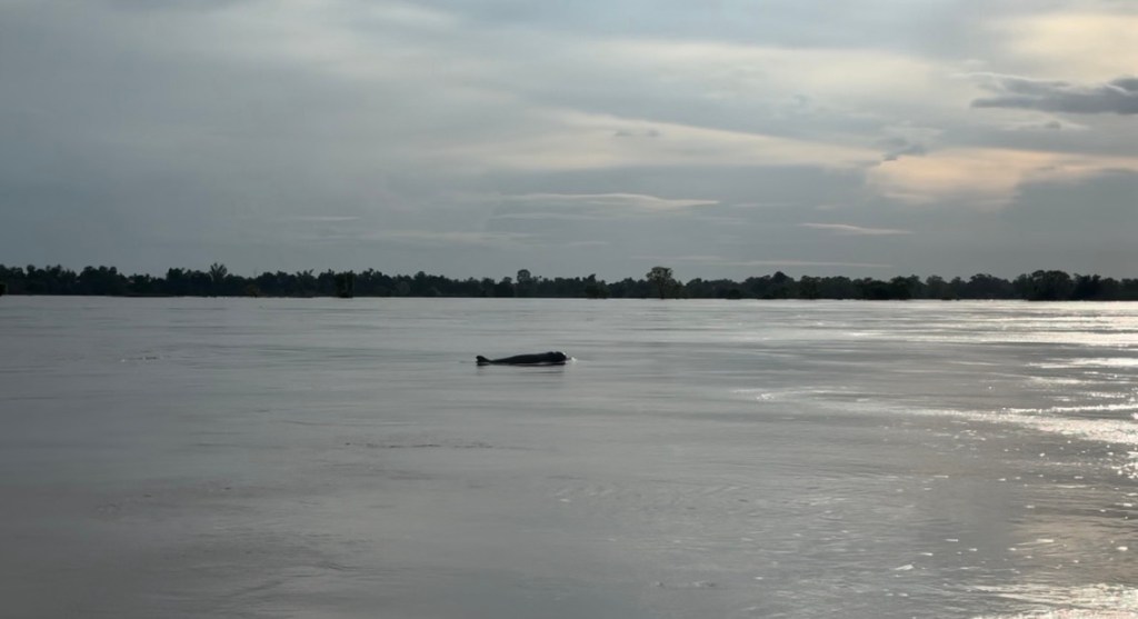 They look similar to belugas, but are actually closer related to the killer whale. We keep a respectful distance, as these dolphins don’t like to be near boats or bow-ride. They are fully protected here in Cambodia as an endangered species. We stay on the river for around an hour, catching sightings here and there.