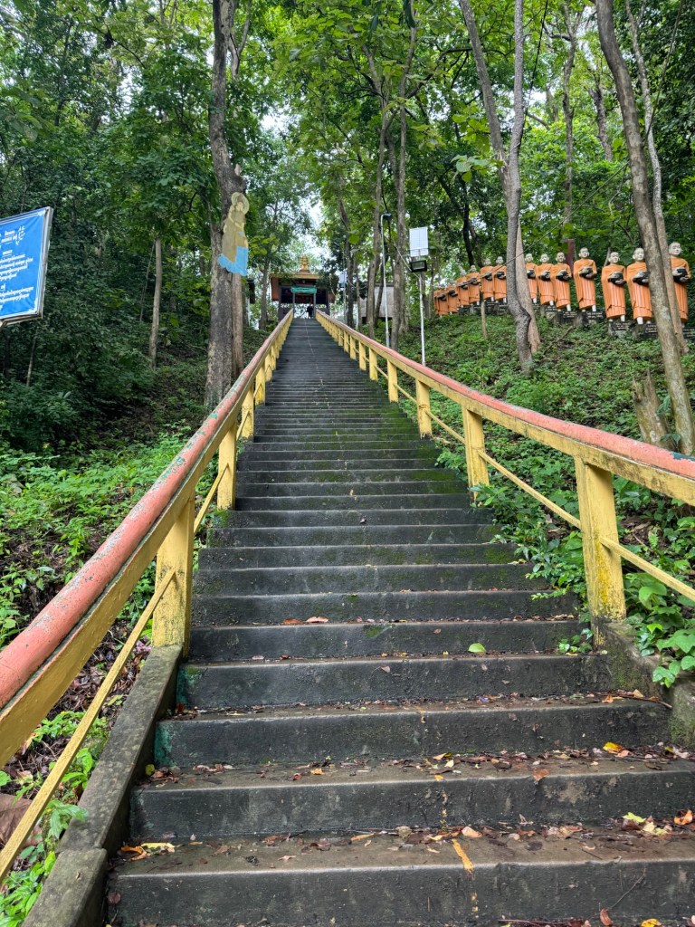 After the first flight, we are in an area with part of the temple and meditation huts for the monks that live here.