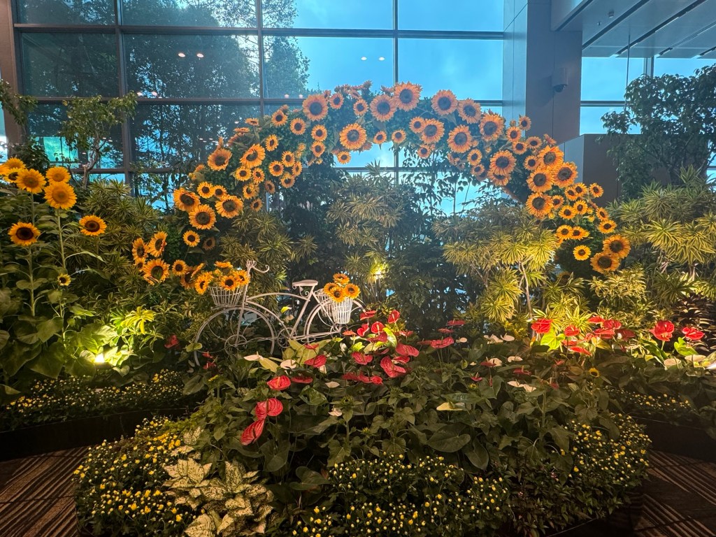 My 14 hour flight from Vancouver lands shortly after 6am so I have around 4 hours to kill before my connecting flight. The only problem is…I’m here too early to enjoy some of the attractions. But the great thing is… there are still lots of things open this early! There are all kinds of flower displays, like these.