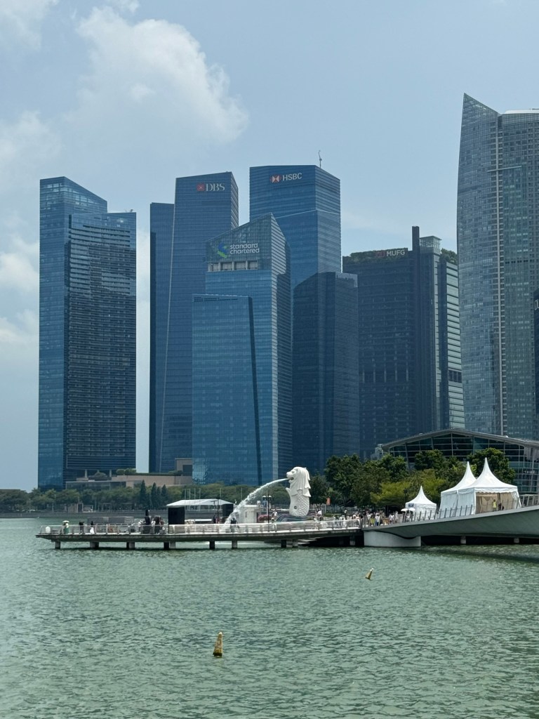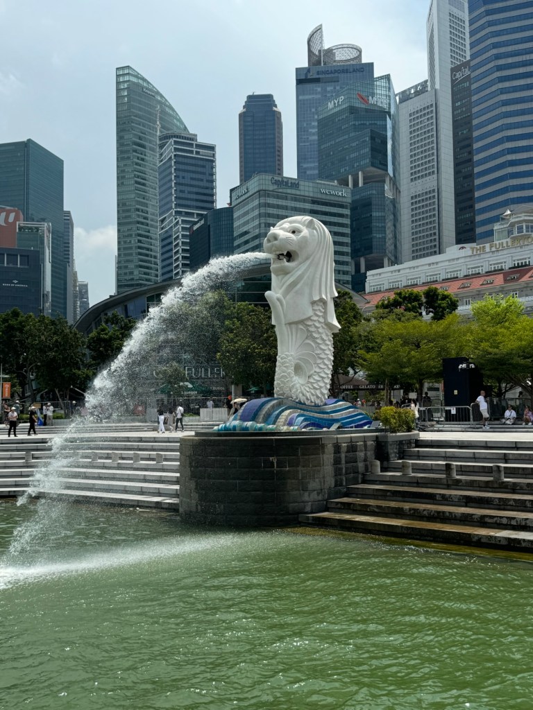 Fun facts I learned about the Merlion – it was struck by lightning in 2009, splitting off fragments of her head (yes apparently it’s a girl fountain). And Singaporeans will substitute the word Merlion in lieu of vomiting, in reference to the water gushing out of her mouth. Can’t make this shit up!