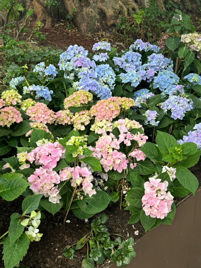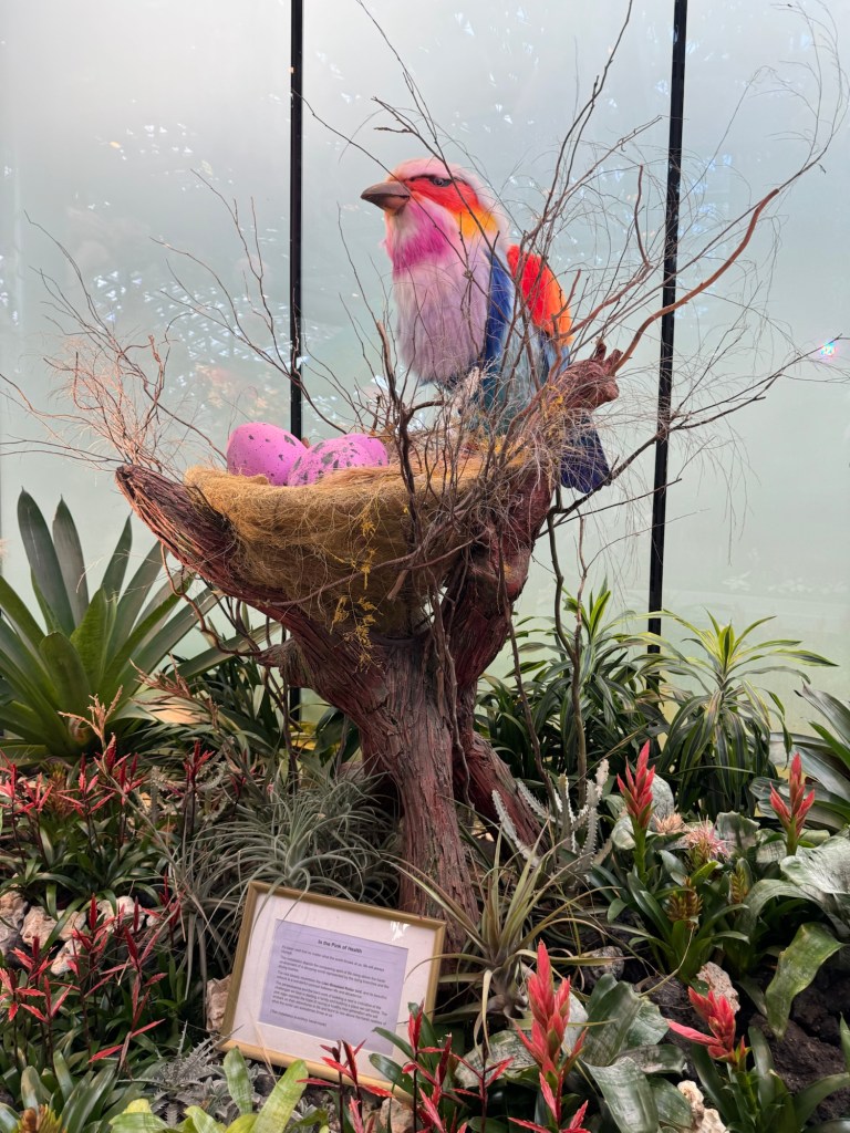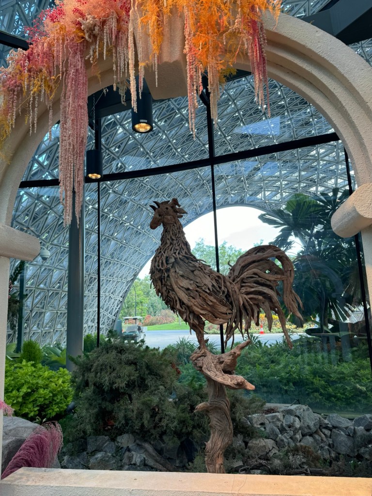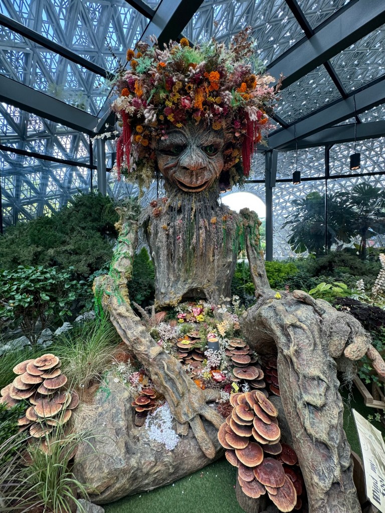 I take the elevator up the mountain and then walk down the ramps, enjoying all of the plants, flowers and sculptures along the way.