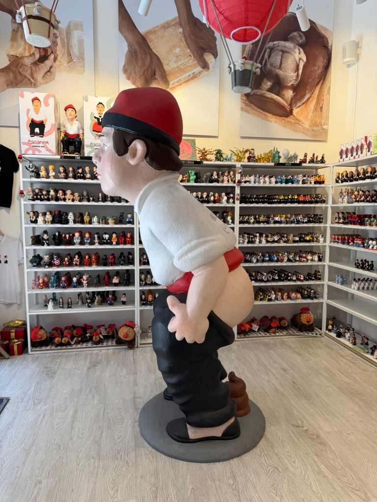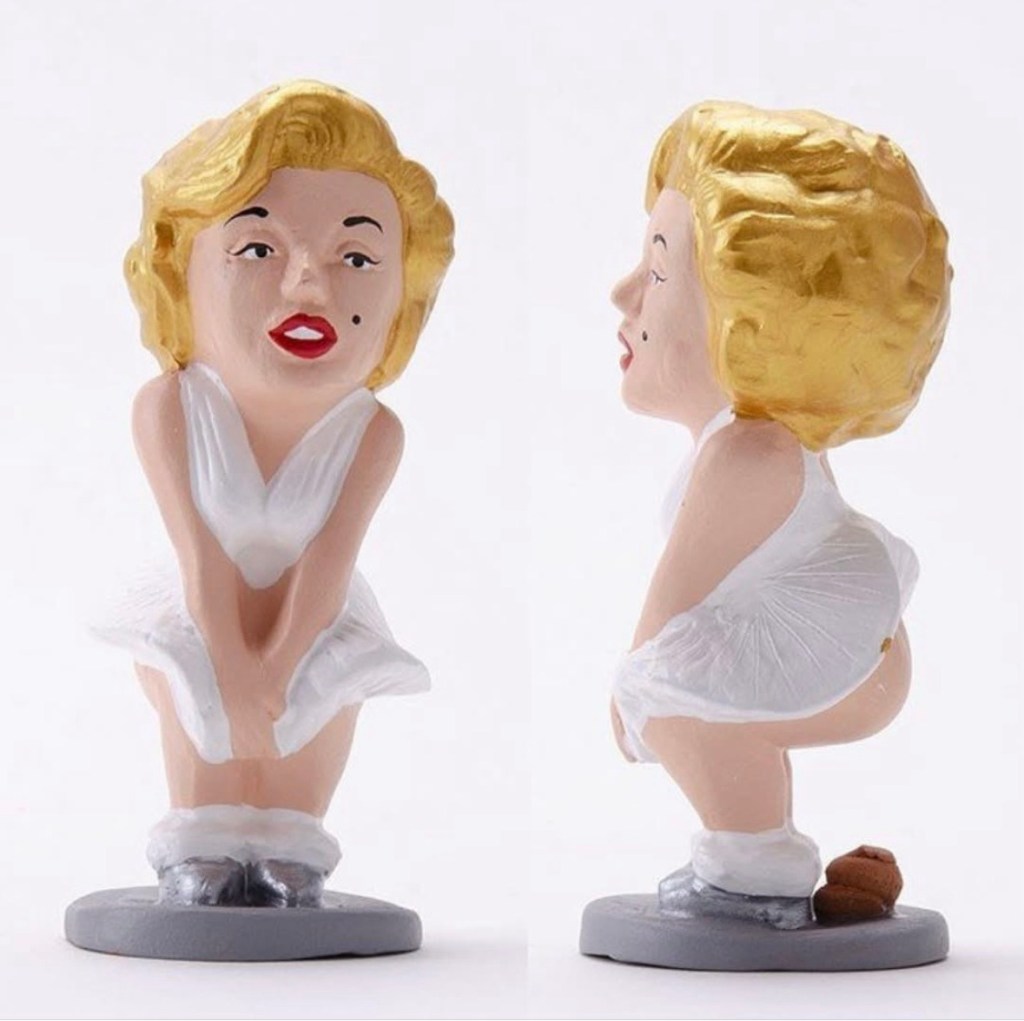 A caganer is a figure/character from Catalonian Christmas nativity scenes. It is traditionally a male peasant who is squatting, pants down, taking a poop!! Haha! When I found out this exists, I HAD to get one for myself. The figurines symbolize fertilizing and harvests, and is also for good luck. The tradition has expanded to figurines of celebrities and other famous characters.