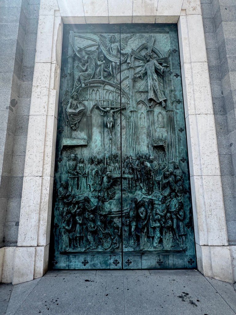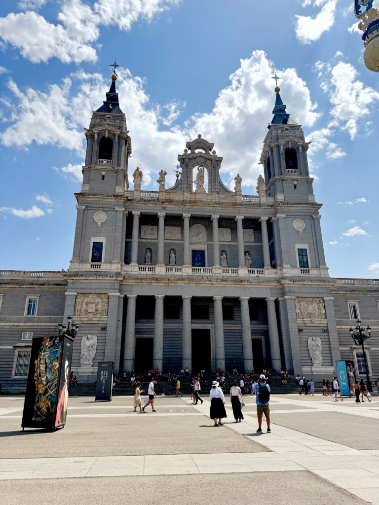 We make our way back to Almudena Cathedral, and go inside. It is Madrid’s main cathedral and is a striking mix of architectural styles – neoclassical and neo-gothic.