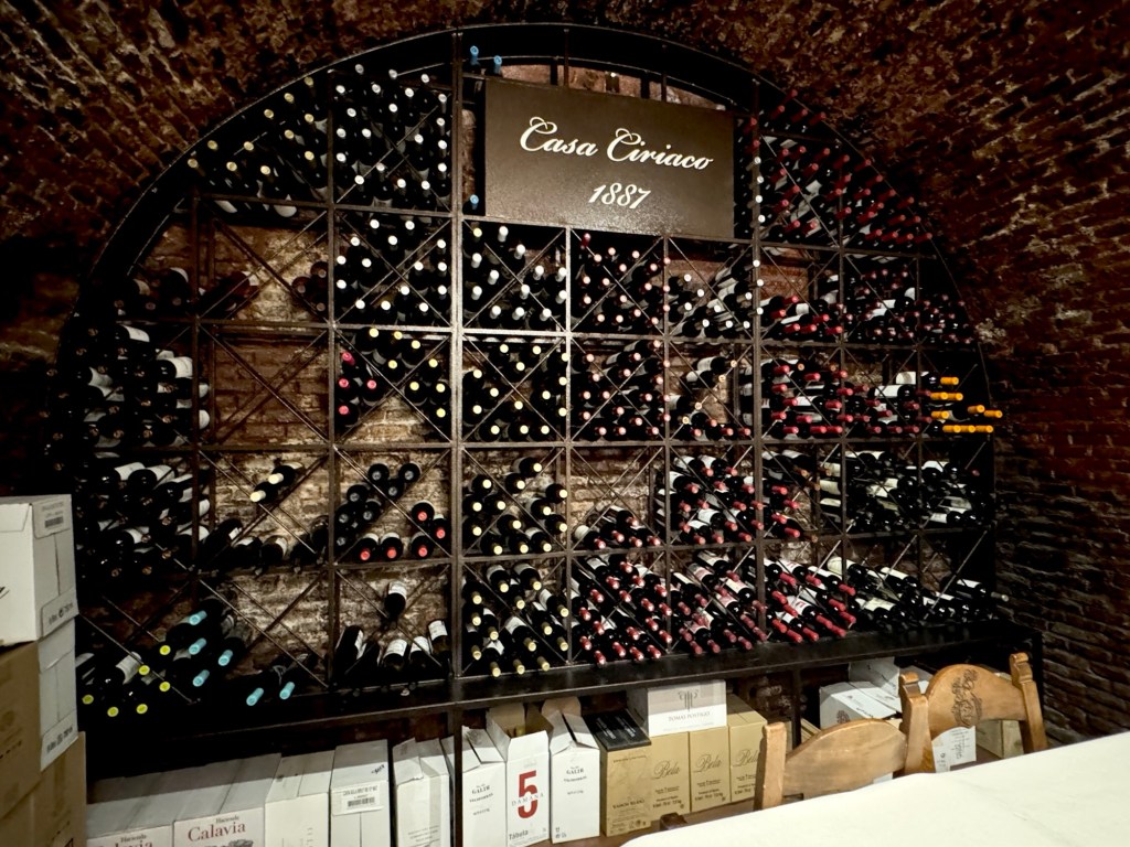 We are having dinner at a historic place called Casa Ciriaco, a classic old tavern with traditional cuisine.