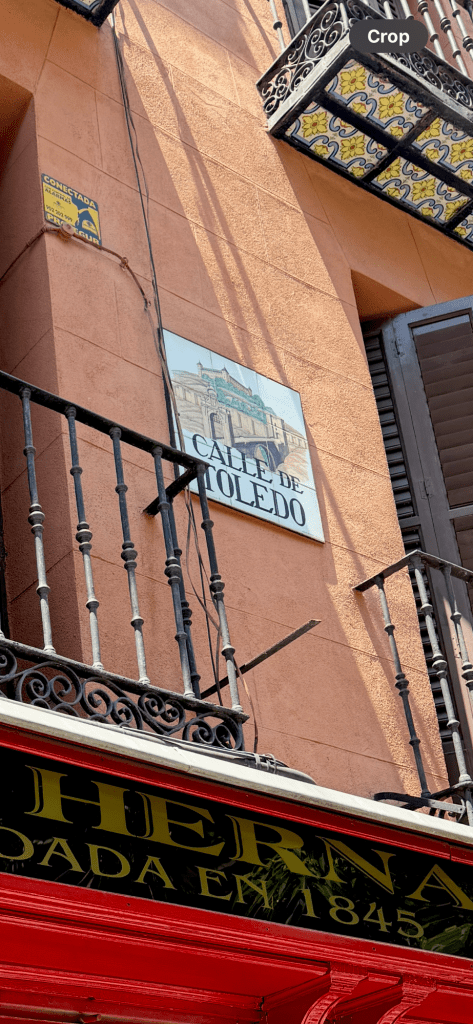 We continue on to Plaza Mayor, where the walking tour ends and we have some free time for lunch and more exploration. I decide to go off by myself, and I end up at a small shop called Bartolomeo for an Iberico ham and cheese sandwich. The ham comes from a native breed of pig and is considered one of the finest hams in the world. I will agree with that, it’s a must try!!