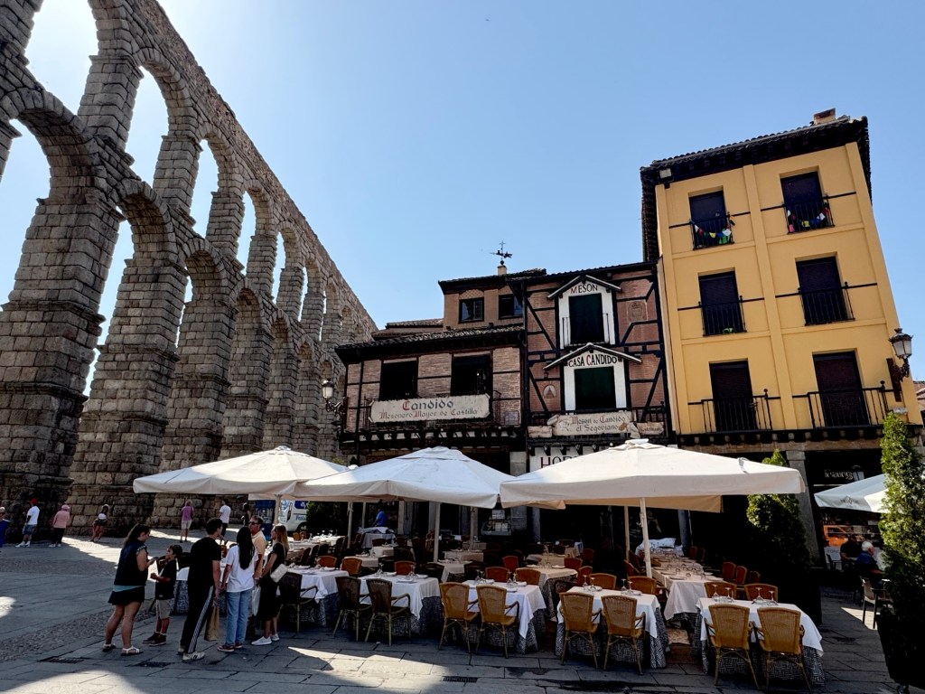 It’s only an hour until we arrive at our first destination…the beautiful and historic city of Segovia. It is often described as a place where you can walk through 2,000 years of history in a single afternoon – Roman, medieval, Renaissance, and Baroque layers all stacked together. The old town is compact and walkable, an enchanting place out of a storybook with its medieval walls, cobbled streets, plazas and traditional Castilian houses. Let’s explore!!