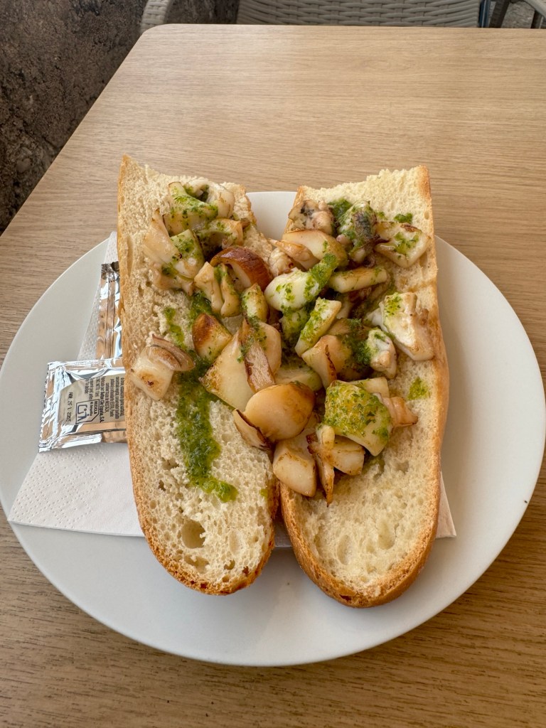 After this, it’s time for lunch and I find a restaurant that is on my list. It’s called Tasca al Masset; to get to the tables I have to climb up a flight of steep stone steps, but the view of the town below is amazing.