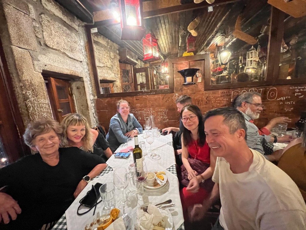 Since it’s our last night in Portugal, and one of the last of the tour, everyone is having fun and drinking tons of wine! As we should!!