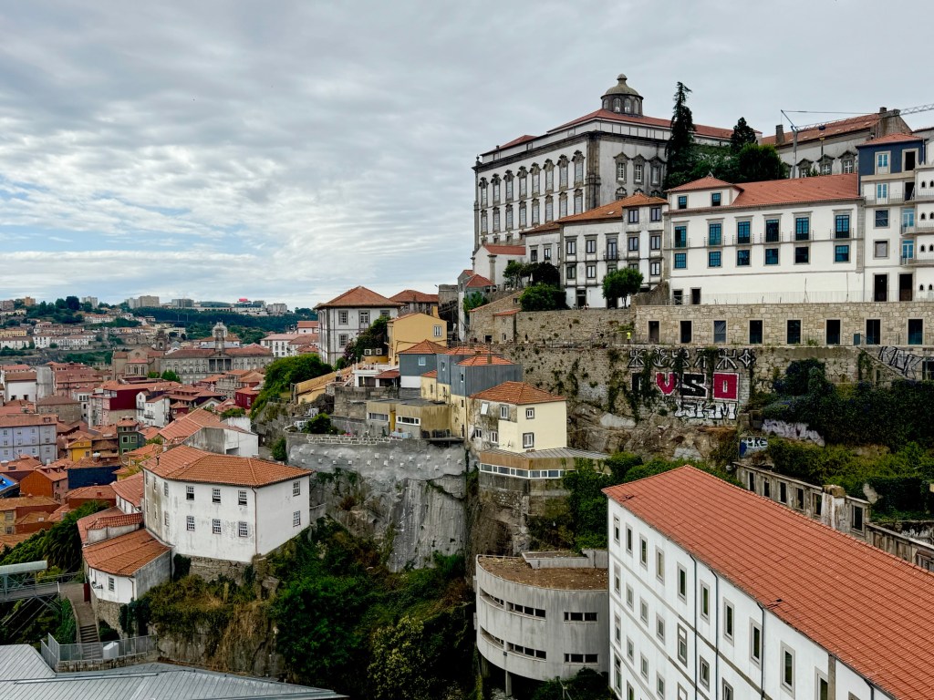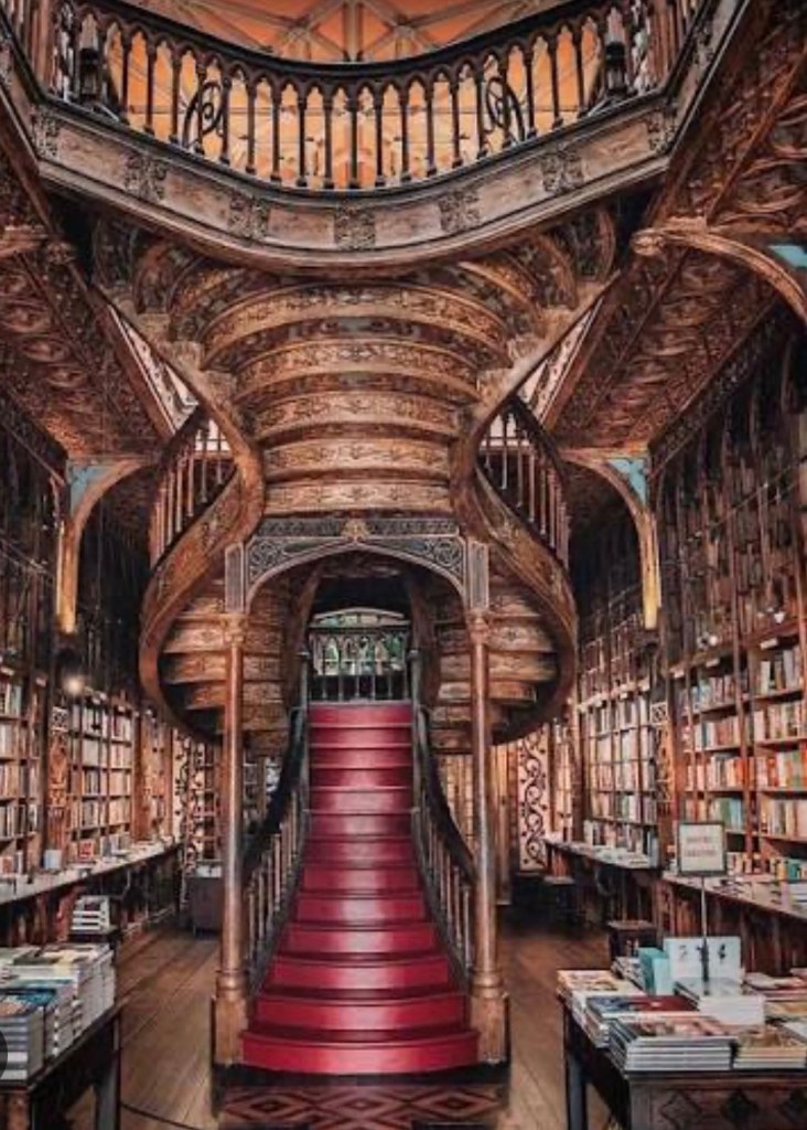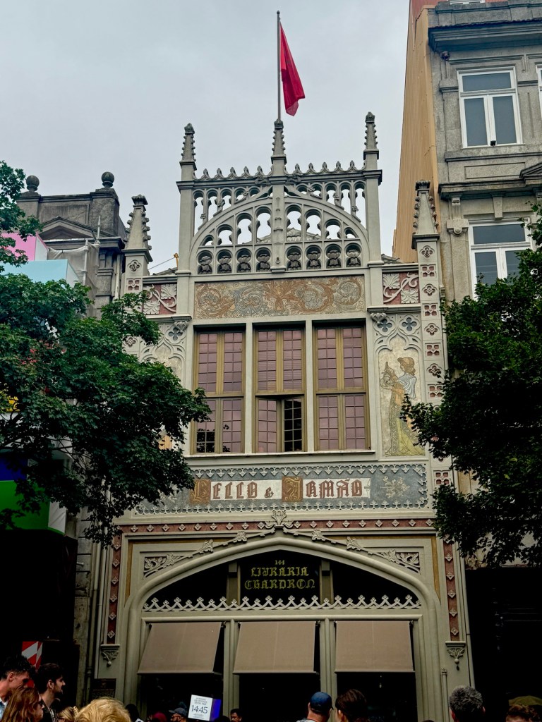 We walk past the Livraria Lello, one of the most beautiful bookstores in the world, with its dramatic staircase and carved wood interior.