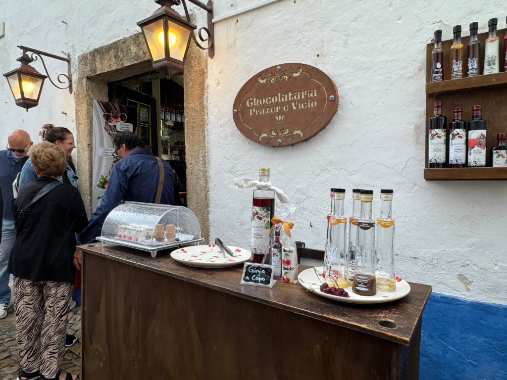 One thing Obidos is known for…its production of ginja, a traditional Portuguese liquer that originated in Lisbon in the 19th century. It is made by infusing ginja berries(sour cherries) in brandy with sugar and cinnamon. Yes please!!