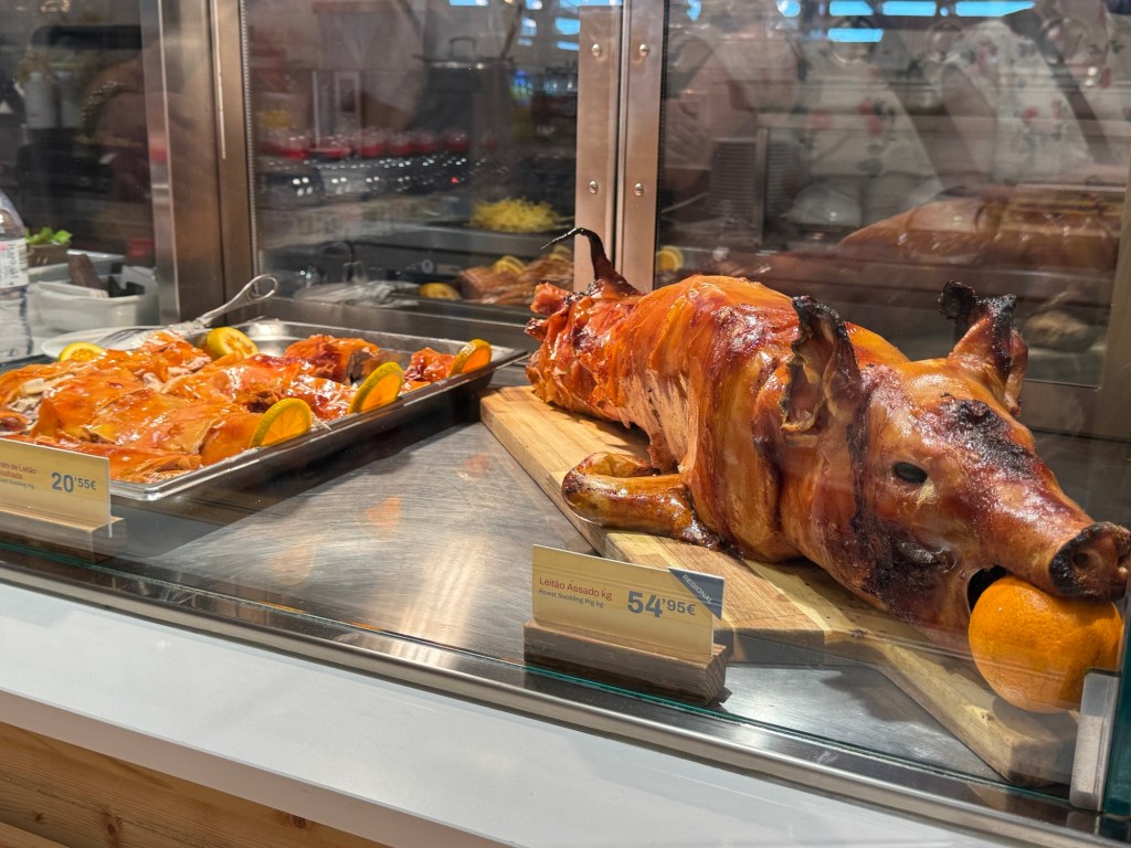 Then we make a lunch stop at one of the truck stop highway joints. I have mentioned this in a previous blog….I can’t stand these places – this is one of the downfalls of coach bus tours of 30 people. We have to go to places that can accommodate large groups. The food is not always great, and it’s super expensive and not always an authentic local food experience. I’d much rather have time to eat in the cities we visit, but I guess the timings don’t quite work out. But at this stop today – they’re offering roast suckling pig sandwiches and let me say that they are amazing!! First time I’ve tried it on this trip!