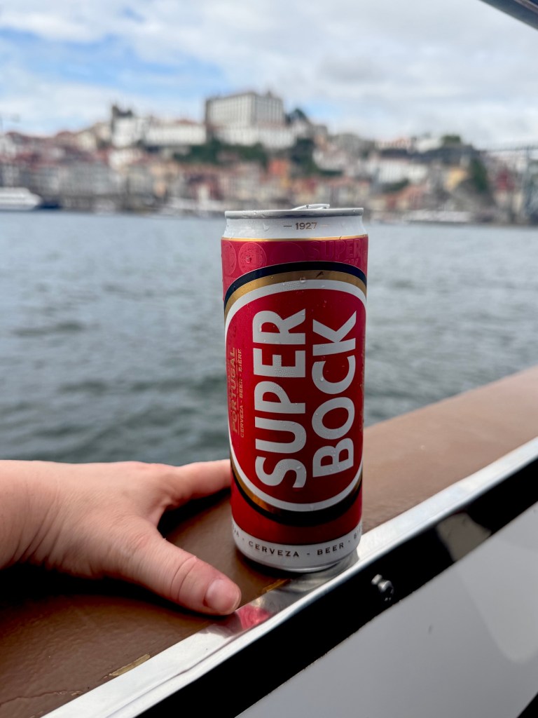 We have some time to find a shop to buy some booze for our upcoming cruise on the Douro River. It’s a pretty basic boat; we can bring whatever we want on it, so I grab a Super Bock, THE beer of Portugal.